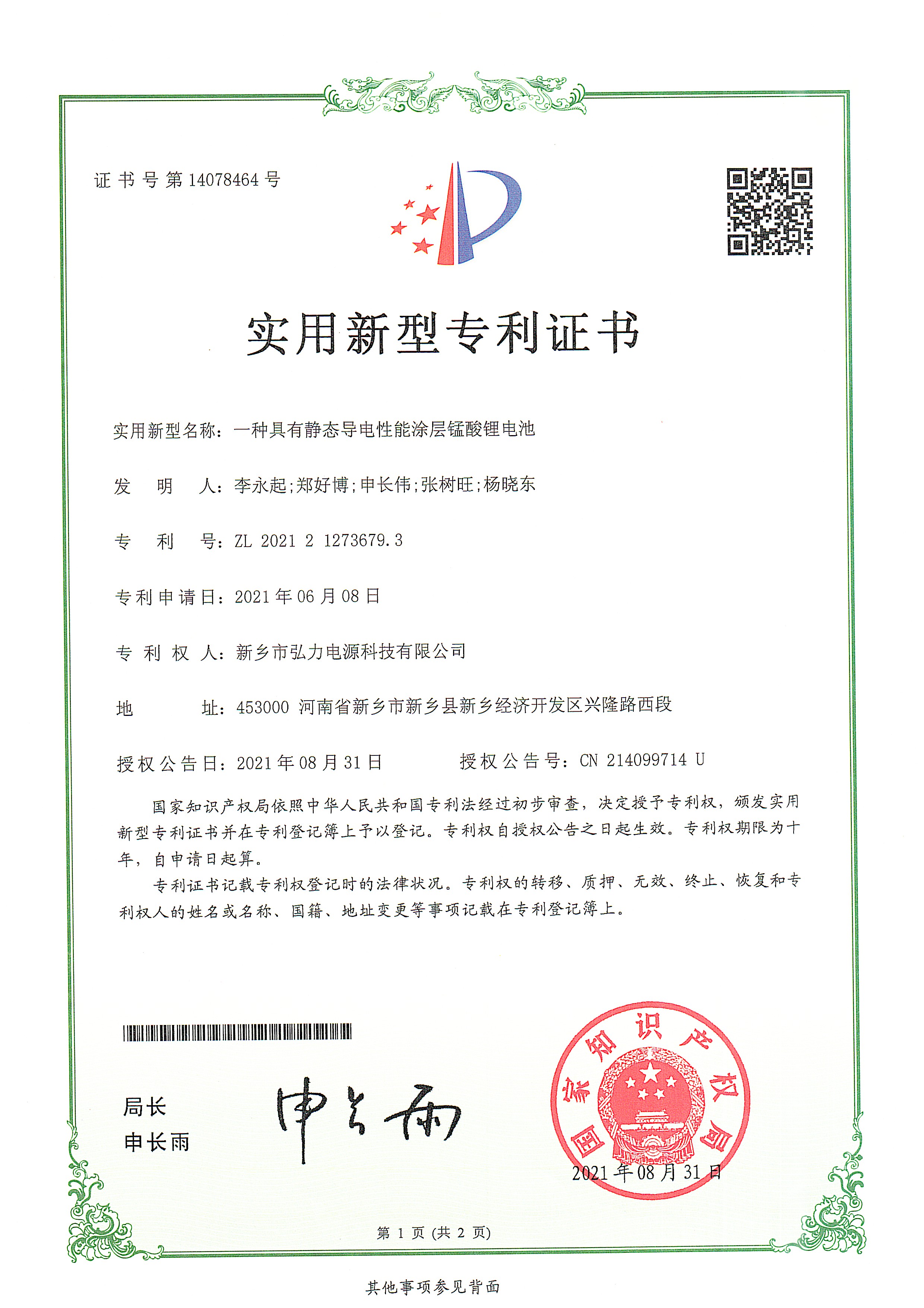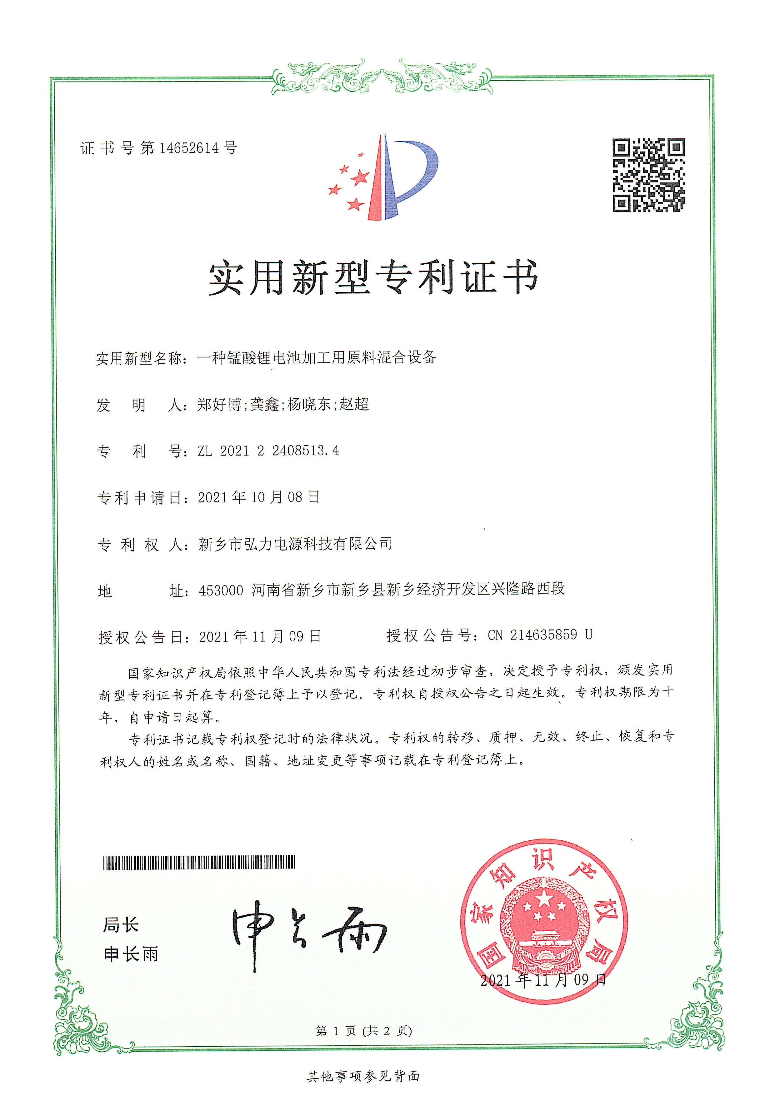 泓力公司研發(fā)平臺被認(rèn)定為“河南省錳系鋰離子電池工程技術(shù)研究中心”。截至2024年,獲得授權(quán)專利53項,其中,發(fā)明專利6項,實用新型專利47項。