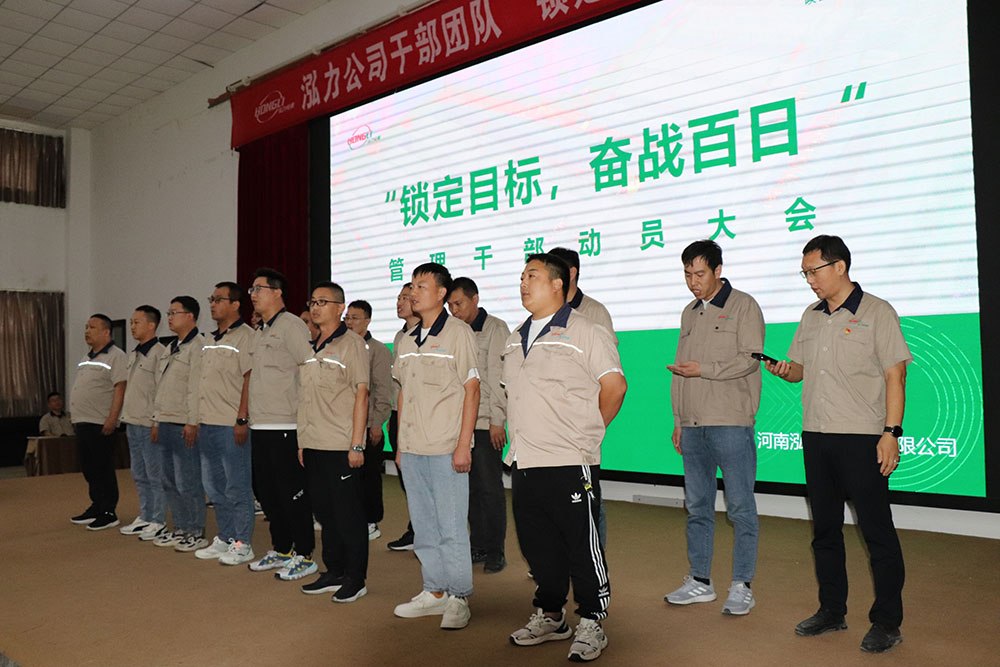 21日下午3時許,弘力公司董事長張新攀、總經(jīng)理朱立、常務(wù)副總桑風(fēng)珍、副總經(jīng)理兼熠星公司總經(jīng)理張新高、制造副總申長偉,營銷副總張華,技術(shù)顧問黃加軍,人力資源副總吳向軍,熠星公司副總鄒溫廣出席本次動員大會,各部門主管以上的共60余名管理干部參加。